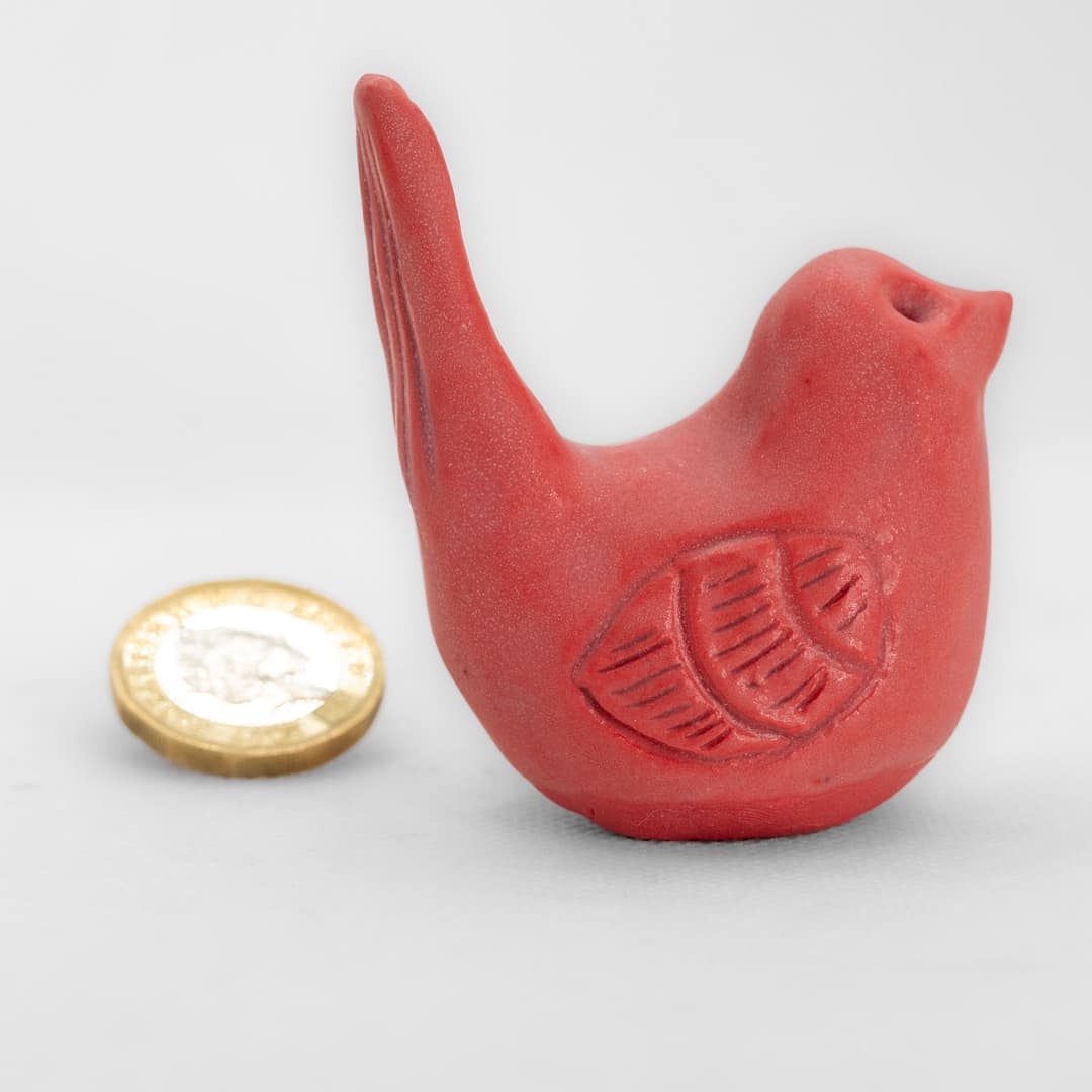 Add a warm, handcrafted touch to your home with this red matte porcelain bird. Lovingly made in the UK, each piece is shaped from fine coloured porcelain and finished with a smooth, matte glaze. Its slightly pointy tail gives it a charming, wren-like silhouette, adding character and elegance to this little bird.